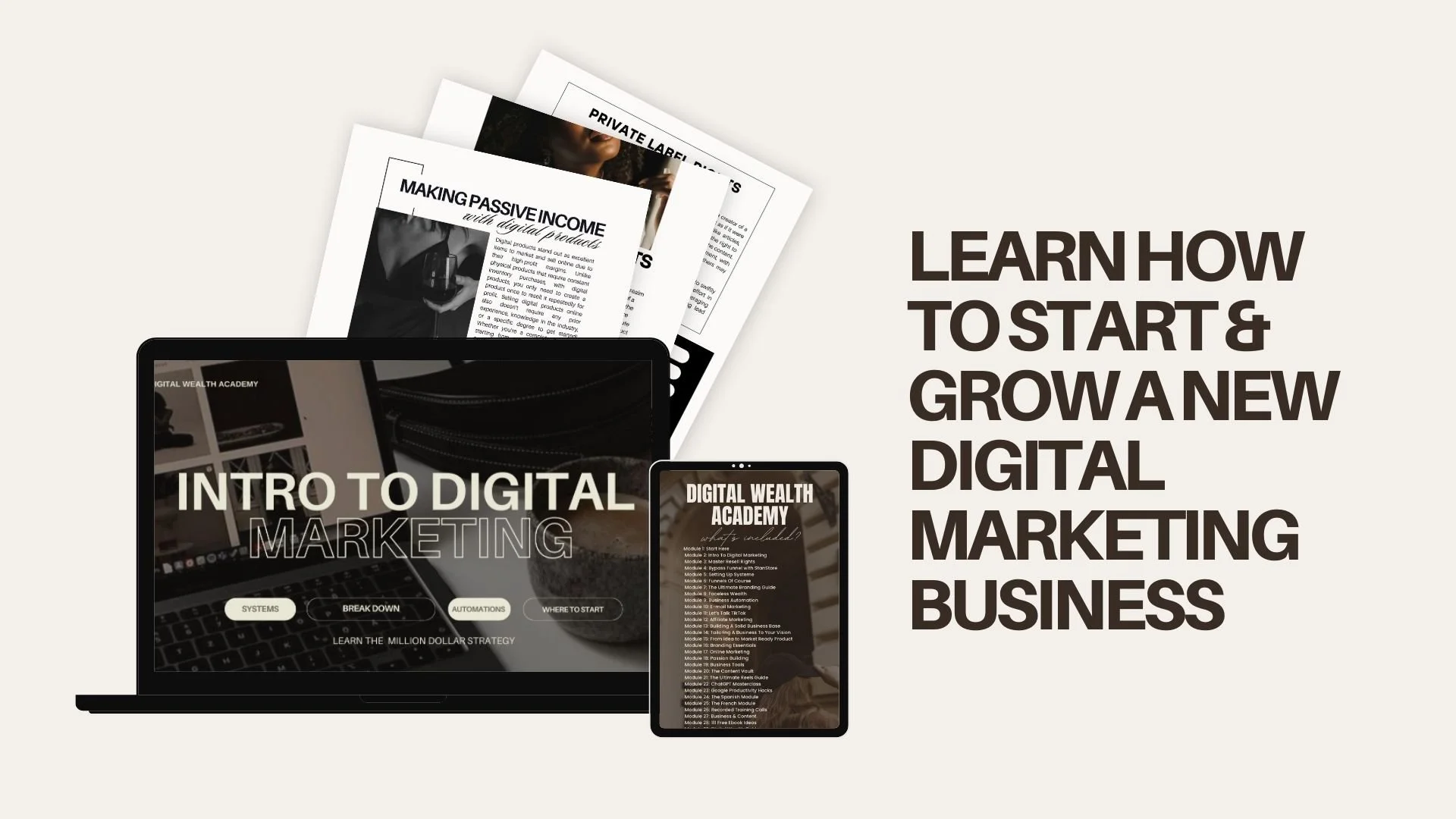 A full digital marketing course that is self-paced and teaches you multiple ways of how to make money online by selling digital products!